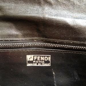 This is a gently worn Fendi envelope clutch in black-woven leather. SO classic-will fit in well in anyone's closet! Circa 1980's-