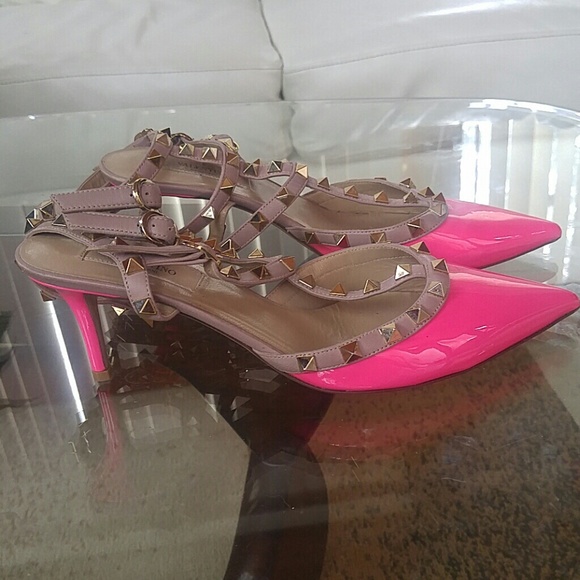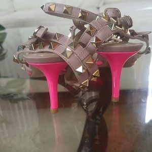 Rockstud/Kitten heels/3 straps/Pink and flesh/ Authenticity card and dust bag included.