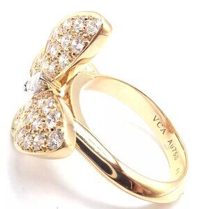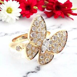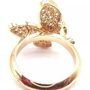 The Authentic Van Cleef & Arpels 18k Yellow Gold Diamond Two Butterfly Ring is a luxurious piece, showcasing two delicate butterflies crafted from 18k yellow gold.