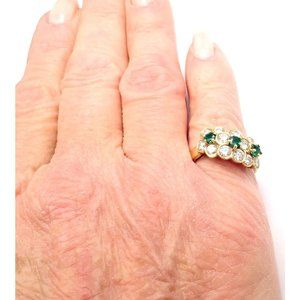 Authentic! Van Cleef & Arpels 18k Yellow Gold Emerald Diamond Fleurette Ring