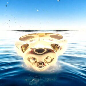 Authentic! Van Cleef & Arpels 18k Yellow Gold Teddy Bear Band Ring Pendant