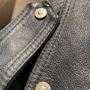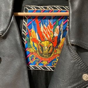 Authentic Versace leather jacket pre-dating the murder of Gianni Versace. Slightly worn and requires some restitching at the collar. Very rare!