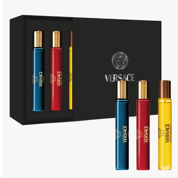 100% authentic luxurious three-piece travel fragrance set featuring bold, warm, and spicy scents from the iconic Versace Eros collection. Perfect for gifting or on-the-go wear.