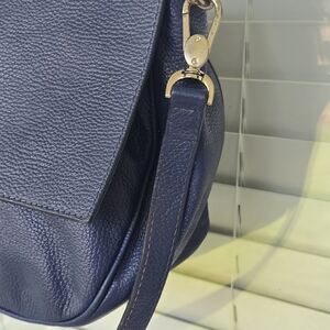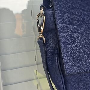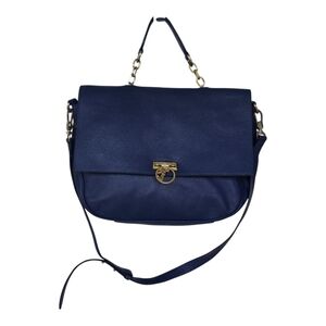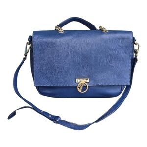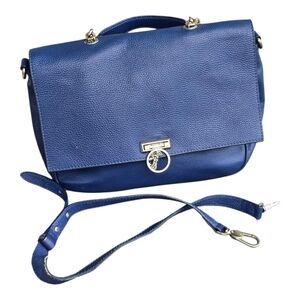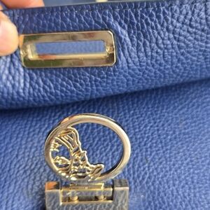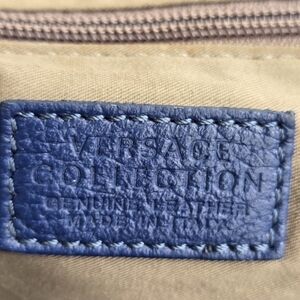 Authentic Versace Leather Shoulder Crossbody Bag Women Blue Removeable Strap