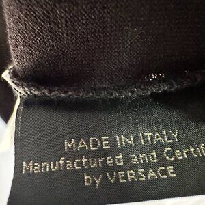 This product is an authentic Versace T-shirt in size L for men. It features a regular fit and short sleeves, making it a versatile wardrobe staple. The T-shirt is black in color and made from high-quality cotton material, reflecting the designer and Italian themes associated with the Versace brand. Perfect for adding a touch of luxury and style to any casual outfit.