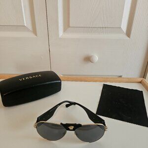 Excellent condition black Versace sunglasses with case and cleaning cloth. Gold hardware. No scratches on lenses.