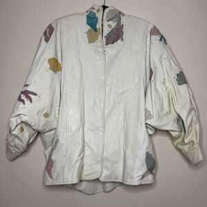 Authentic Vintage 80s Balloon Sleeve Rhinestone Pearl Seashell Leather Jacket