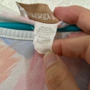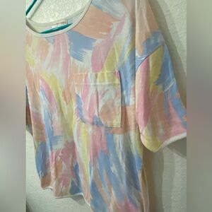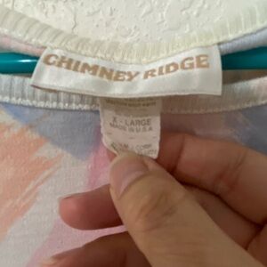 Chimney Ridge 80s cotton blend slight crop shirt with stretch. Shoulder pads. 80s pastel brush stroke print. Great preowned vintage condition. Sz XL
