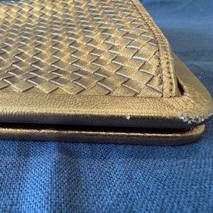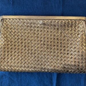Authentic Vintage Bottega Veneta Intrecciato Clutch – Metallic Gold – GUC