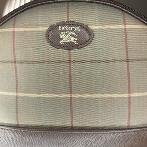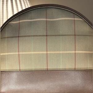 Authentic Vintage Burberrys Brown Leather and Plaid Zip Pouch