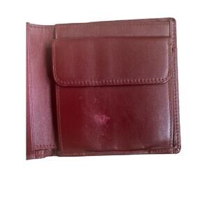 Wallet was recently cleaned with leather conditioner. In excellent pre owned vintage condition. Has very minor wear on the outside of wallet. The inside has a discolored mark on the coin pouch as well as some wear inside. Box has some discoloration and spots. Please see photos.