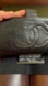 authentic Chanel black leather wallet with an interlocking CC logo prominently displayed on the front. It comes with the original Chanel authenticity card, box, and dust cloth,