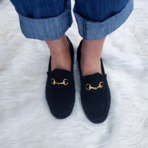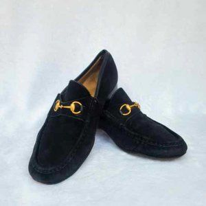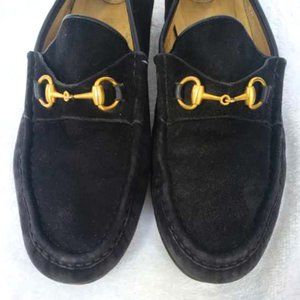 Authentic Vintage Classic Black Suede leather & Gold Horse-bit Gucci loafers 9.5