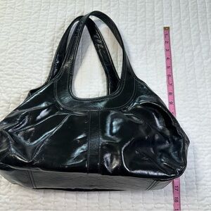 Authentic Vintage Coach Brass Kisslock Pleated Ergo Patent Black Shoulder Bag