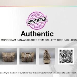Authentic Vintage Coach Monogram Canvas Beaded Trim Gallery Tote Bag