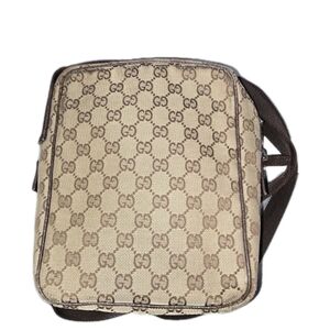 Stylish Gucci crossbody bag with iconic monogram pattern. Features a beige and brown color scheme.
