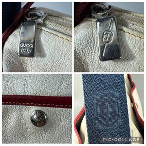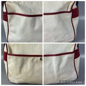 Authentic Vintage Gucci Off-White Leather w/ Red Leather Trims Message Bag
