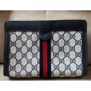 Authentic Vintage Gucci Web Monogram Canvas Black Leather Velcro Clutch