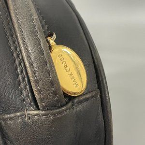 Authentic Vintage Mark Cross Oval Ash-Gray Leather Mini Crossbody Bag/Purse