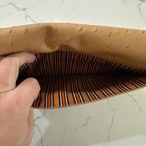 Authentic Vintage Maxx New York Tan Chain Shoulder Bag Ostrich Embossed Leather