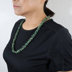 Featuring genuine green serpentine stones carefully set in intricate patterns reflecting the artistry of Native American craftsmanship. This elegant design drapes gracefully around your neckline. Strung with high quality coated wire for longevity.