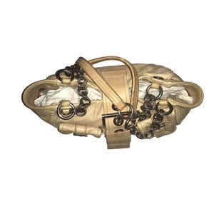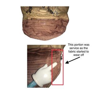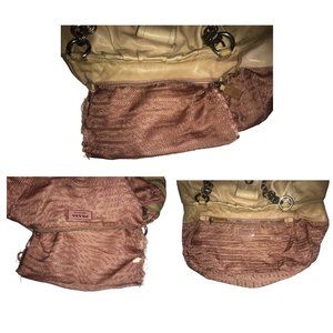 This is a vintage bag, showcasing its unique character through various signs of aging and wear, including discoloration, scratches, and slight stains.