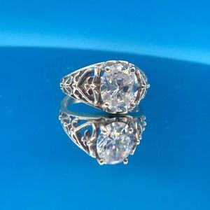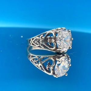 Authentic Vintage Sterling Silver Cubic Zirconia Open-Work Ring