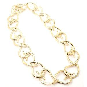 Authentic! Vintage Tiffany & Co 18k Yellow Gold Open Heart Leaf Link Necklace