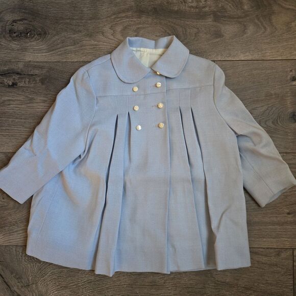 Authentic Vintage Toddler 2T Pea Coat Light Blue Pearl-Toned Buttons ILGWU Union