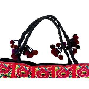Authentic Vintage Y2K Mexican Floral Embroidered Handmade Shoulder Pom Pom Purse