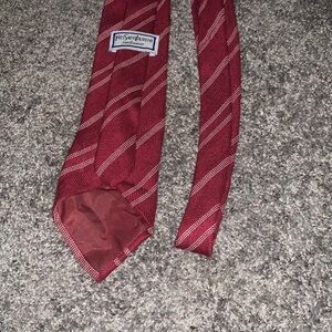 Beautiful red with vertical white stripe YSL tie! Invest in a designer tie that is going to last you a lifetime unlike some of these cheap fast fashion brands! As you can see and tell by the tag this tie has already lasted a long time with no wear in site. No flaws- (no rips, tears, or stains) and from a smoke free home! Ready to ship in 1-2 business days and win that next court case for you, close that next deal, or stand out at your next business event! 😉 🏆 🥇 this is THE tie you want to buy or ladies buy and gift for you boyfriend, fiancé, or husband! Smoke free, ships same business day!