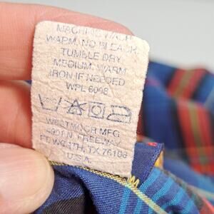 Authentic Vintage Panhandle Slim Western Shirt Pearl Snap Buttons Men's Size 17 Blue and Red Plaid. Short sleeve, unfinished hem. Poly / cotton blend. Machine wash, no iron needed. Excellent pre-loved condition.