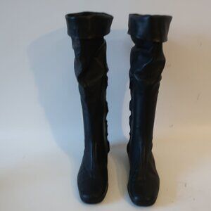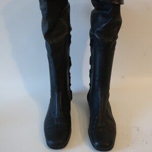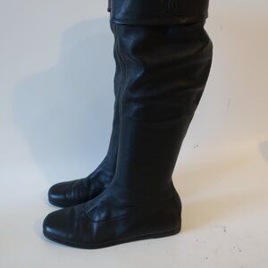 Authentic Womens Chanel Black Flat Interlocked CC Tall Leather Boots 38 US/8