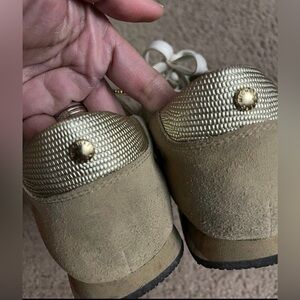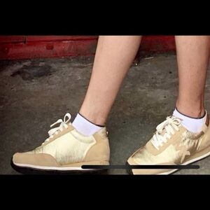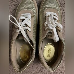 Michael Kors Sneakers, gold/yellow/tan in color. Size 8 Women #sneakers #michaelkorrs #shoes #rubbershoes, lace up closure. Rubber outsole, Preloved, Signs of usage but in great condition.