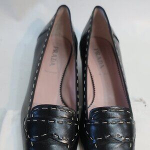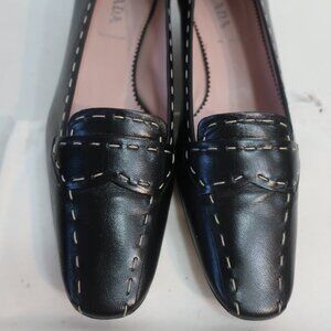 Authentic Womens Prada Black Pink Leather Buffalo City Loafer Pumps 37 US/7