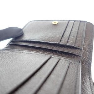 This YSL Cassandra Leather Zip Around Bifold Wallet Accessories features a Black Caviar leather body in size 12-9.5 for f in A condition.