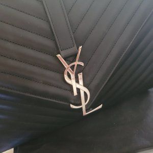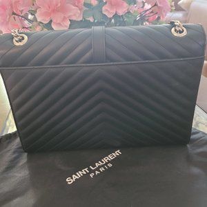 Authentic YSL Large Envelope Flap Silver Chain Handbag