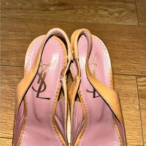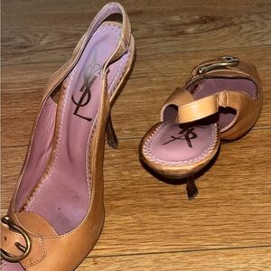 Authentic YSL Saint Lauren brown leather peep toe heels size 38.5 (us 7.5)