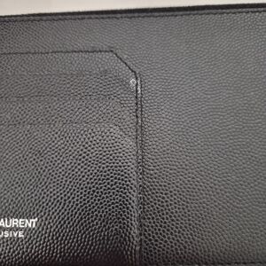 Exclusive Saint Laurent (YSL) black pebbled leather zippered pouch/card case. This was a limited-edition VIP Christmas gift featuring the rare "SAINT LAURENT EXCLUSIVE" silver foil stamp. It is a collector’s piece not found in the retail catalog.