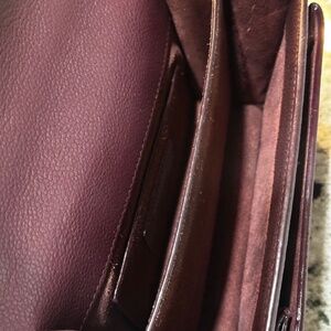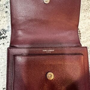 Great condition, previously loved Authentic YSL sunset in burgundy. Recently conditioned (leather) and polished (hardware). The authenticity card is included- see pic for the link. Big enough for your phone and other girl stuff. The chain can be doubled as a shoulder bag or pulled and worn as a crossbody. Non-original dust bag included.