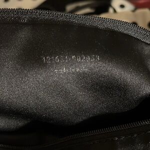 Stylish black and white polka dot bag with elegant black accents. She comes with flaws from me having my bag cleaned and the dye rubbed off onto the canvas I took the best pictures I could take to show the dye rub. Used not new so it has normal wear no holes, rips, or tears. Good condition considering the dye. No returns she comes with flaws!!! Ty 14x14