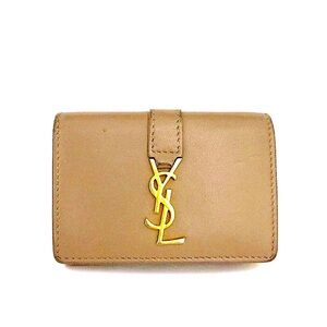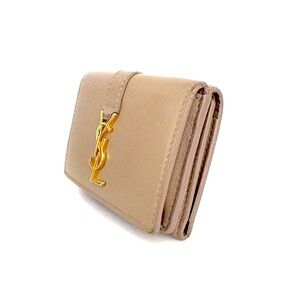 Authentic YSL Yves Saint Laurent Cassandra Leather Trifold Beige Compact Wallet