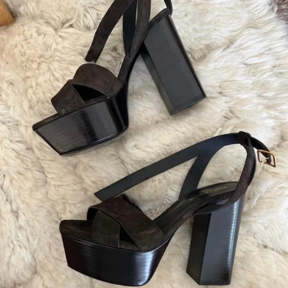 Authentic YSL brown suede block heel platform. Comes with box and individual shoe bag