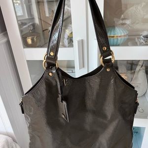 Authentic YVES SAINT LAURENT PATENT OLIVE GREEN TRIBUTE BAG PURSE TOTE