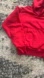 Vibrant red sweater with a cozy hood. Ideal for casual wear.