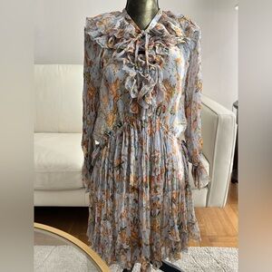 Authentic Zimmermann Painted Heart Ruffle Mini Dress Blue Yellow Floral Silk Sz0