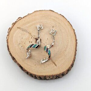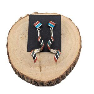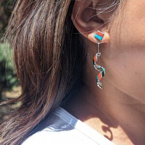 Authentic Zuni Spiral Multi Stones Inlay Dangle Earrings Handmade NA Jewelry**