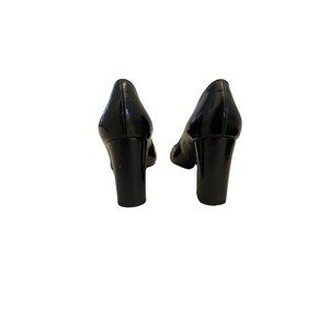 Black kid leather authentic Gucci stacked heels (3 in). Purchased at Saks Fifth Avenue. Excellent condition. I will send in a Gucci dust bag, but it may not be the one that came with the shoes. Sorry no box. Could fit 5.5 - 6.0 (not 6.5)