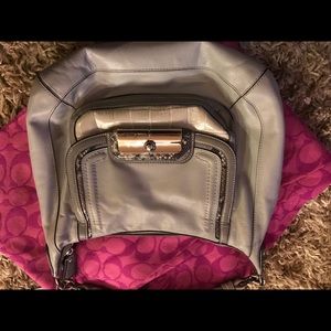 Used in good condition Coach purse. Normal wear with a few very hard to notice scuffs. It’s a beautiful snake skin accents with silver hardware.