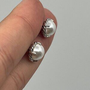 Authentic david yurman pearl stud earrings sterling silver and white pearl